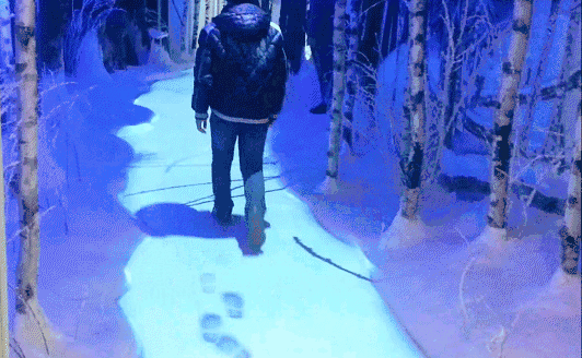 3、地面互动系统让脚下的画面栩栩如生,给参观者奇特的体验。