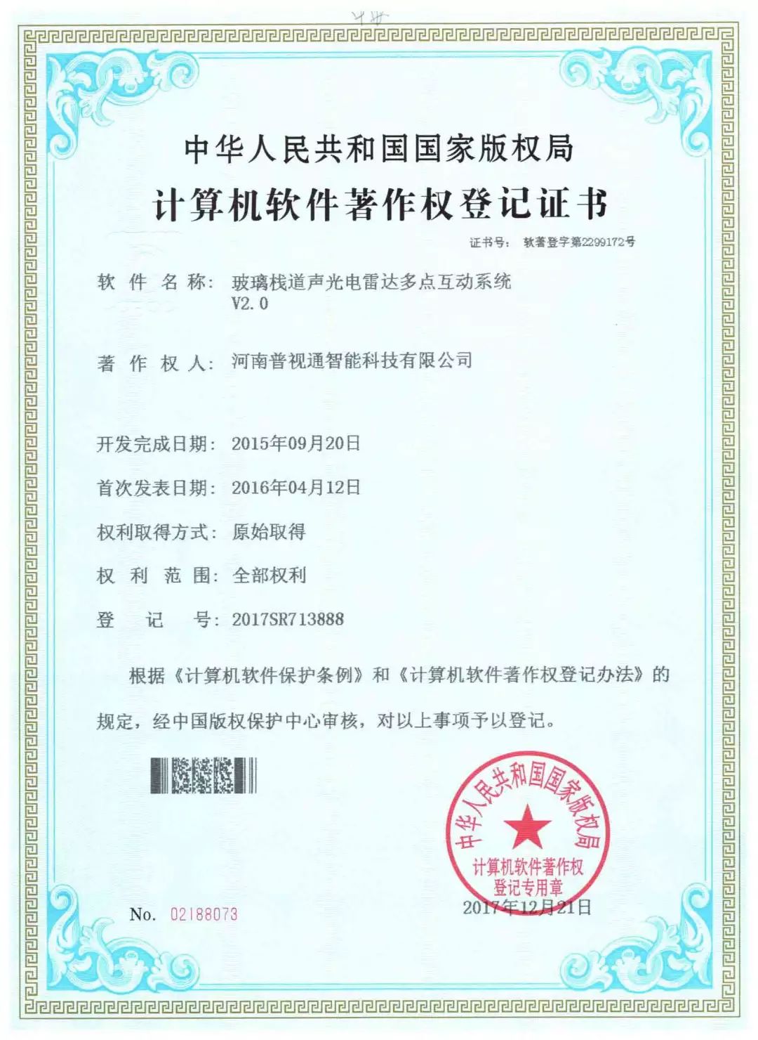 新增软件著作权证书4个