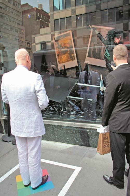 影像漂浮在透明的玻璃墙之上,人路过门店时,就会被动态的图案、视频吸引,可以根据自己的喜好点击观看,同时透过漂浮的图像能够看到玻璃墙内的一切,科技感十足;互动橱窗的效果图